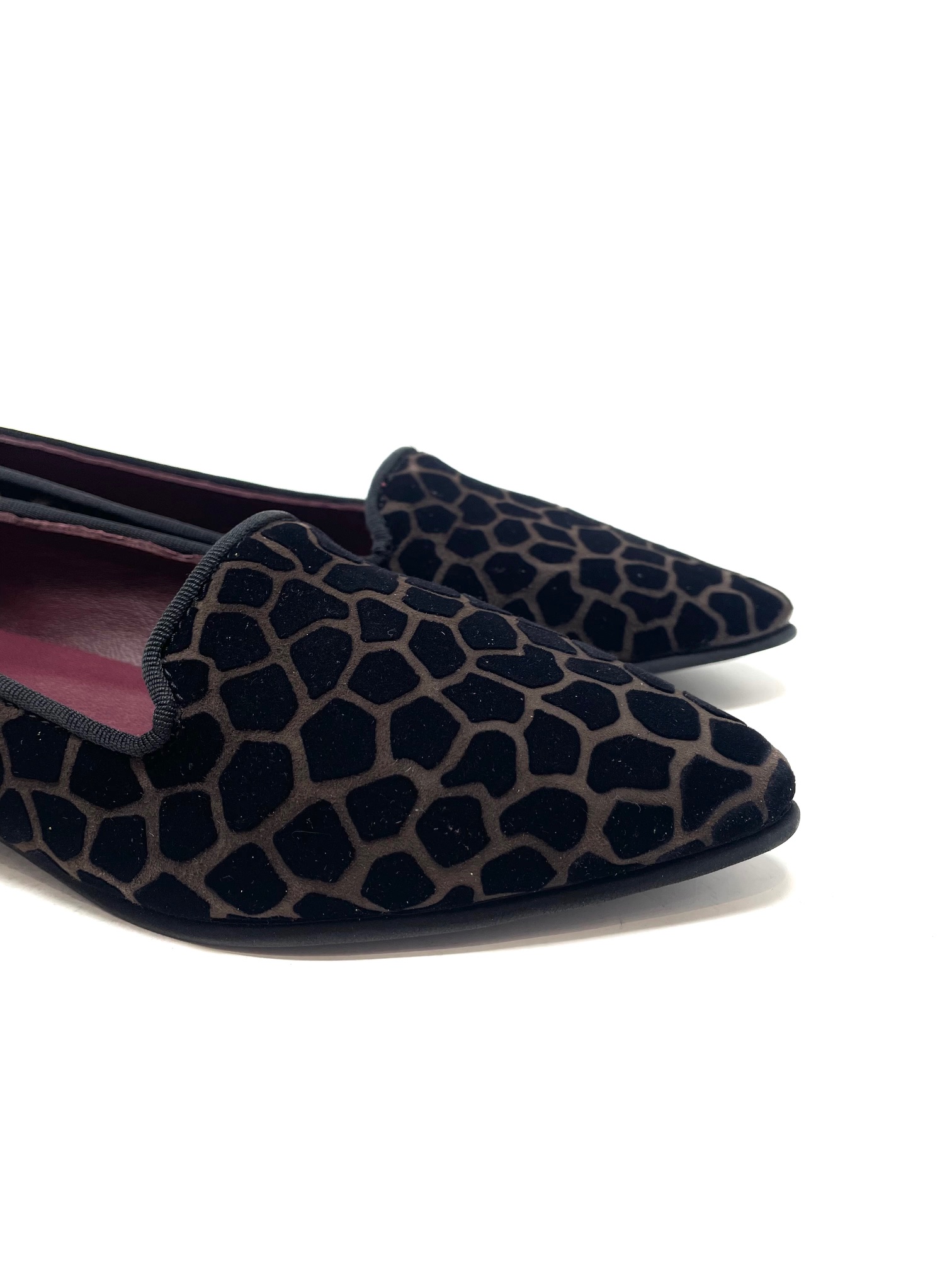 Esplora la tua anima selvaggia con la ballerina a punta in camoscio giraffa, Made in Italy.