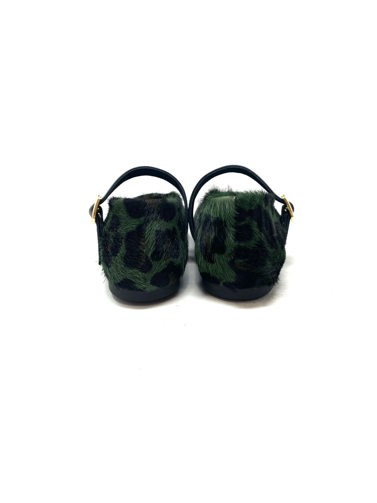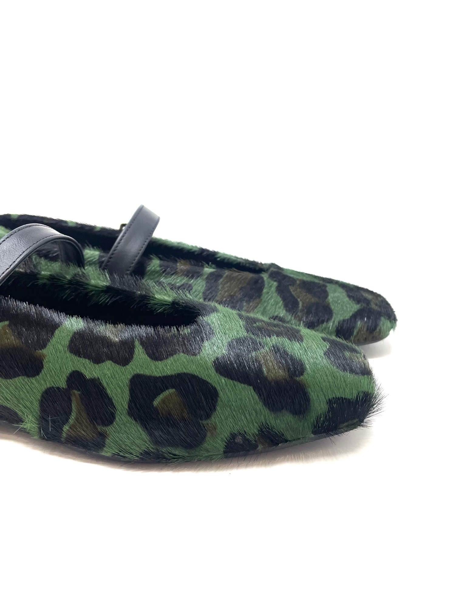 Aggiungi un tocco di grinta al tuo stile con la ballerina in cavallino leopardato verde e nero, Made in Italy.