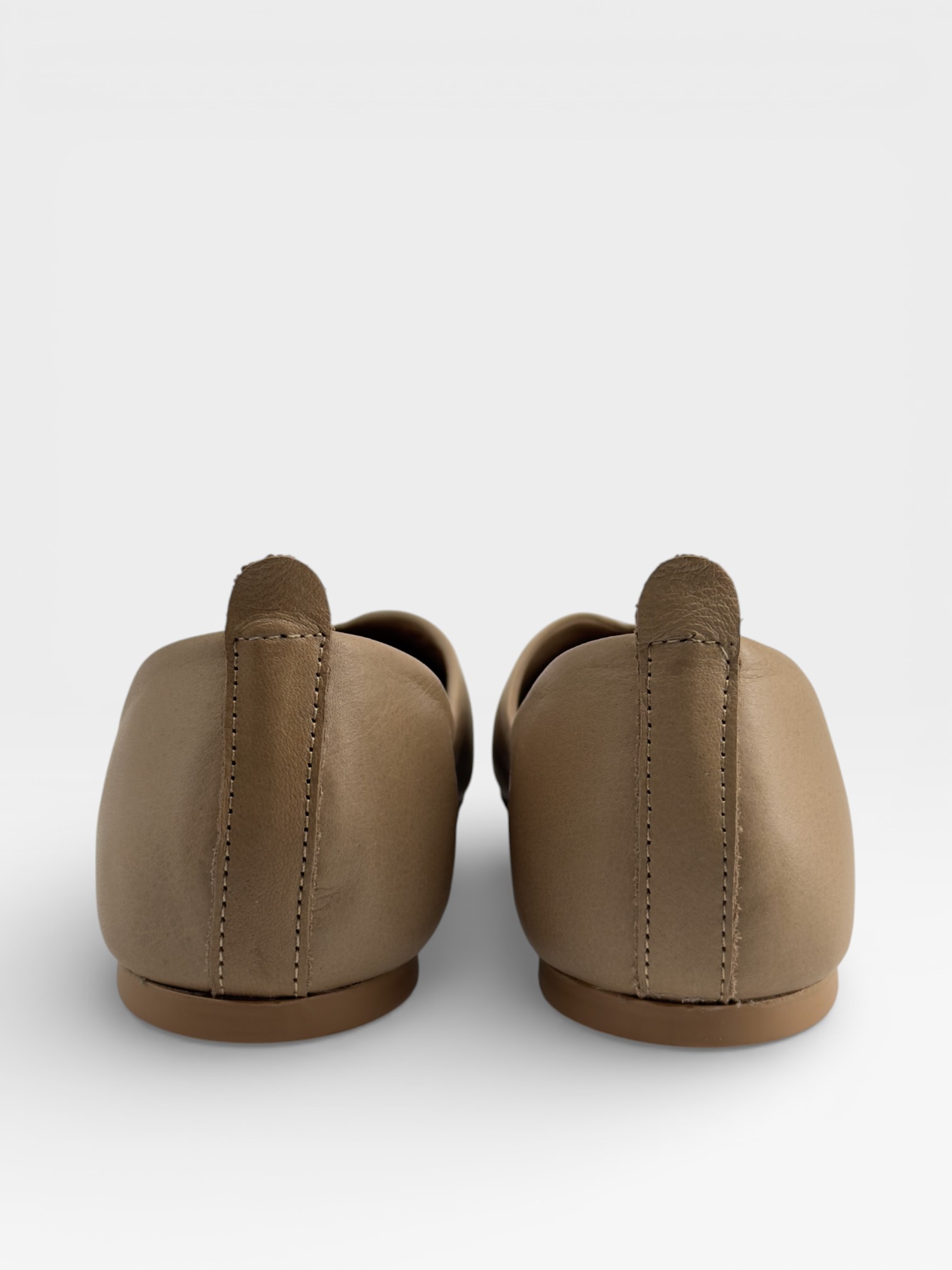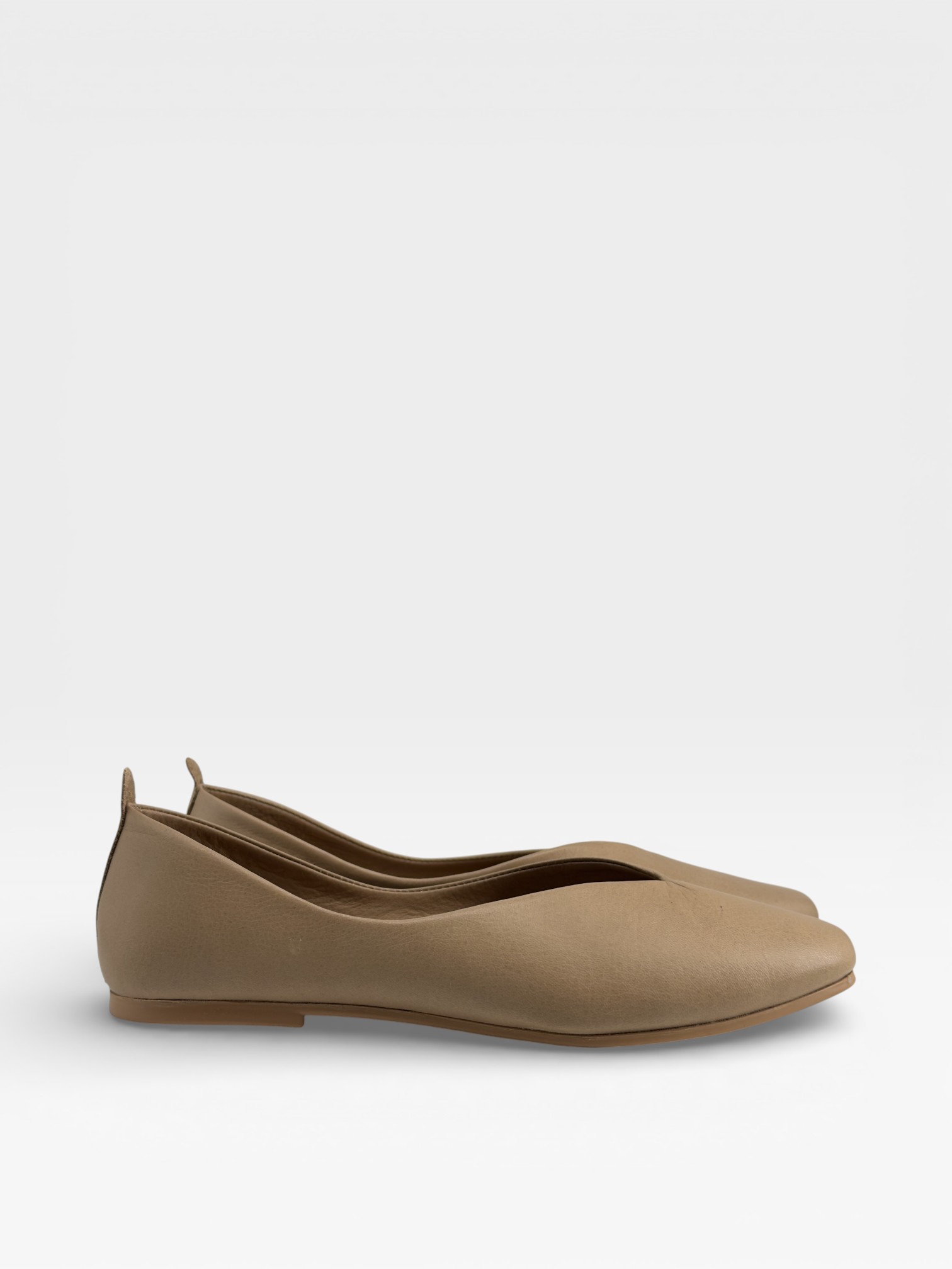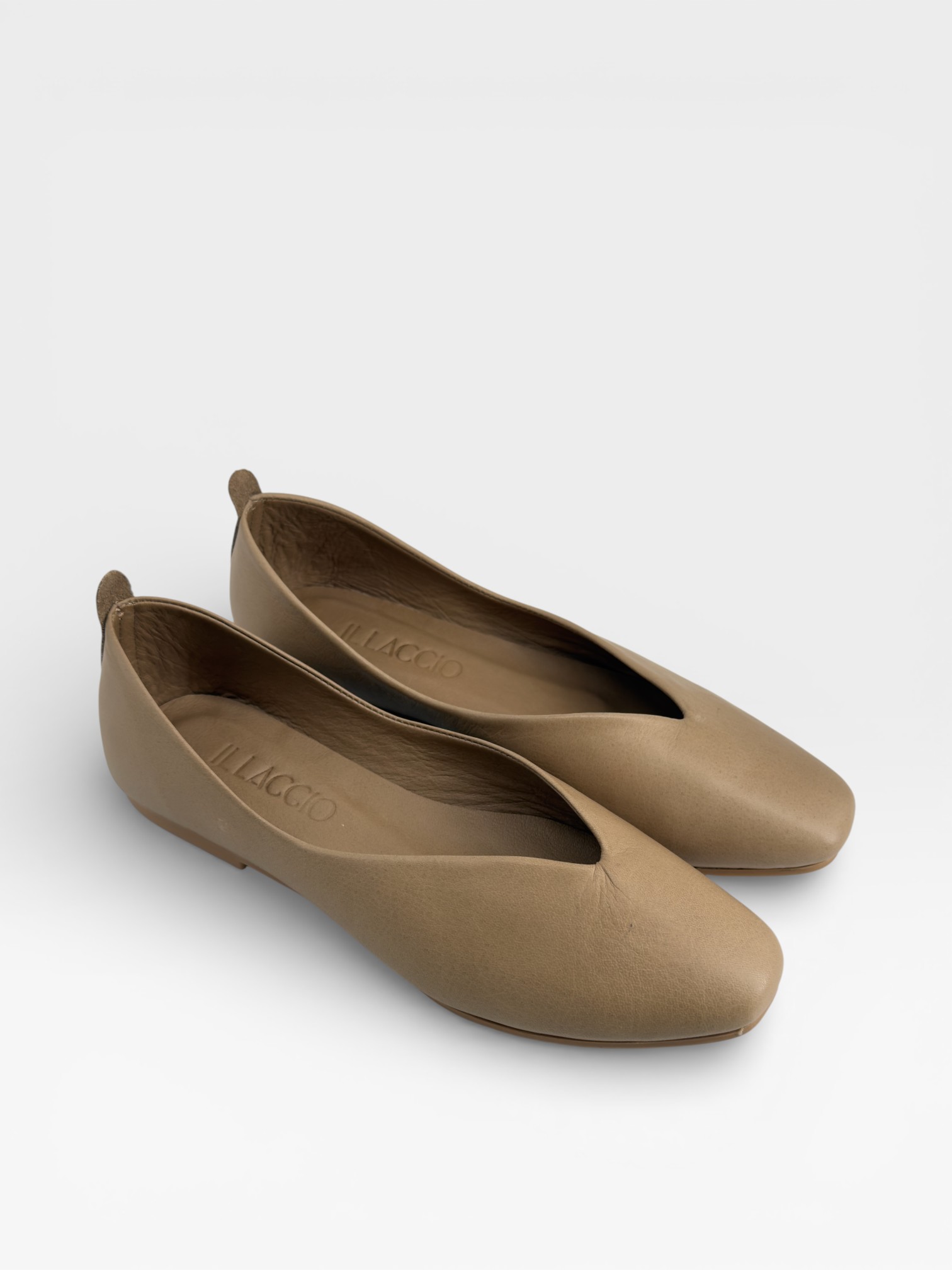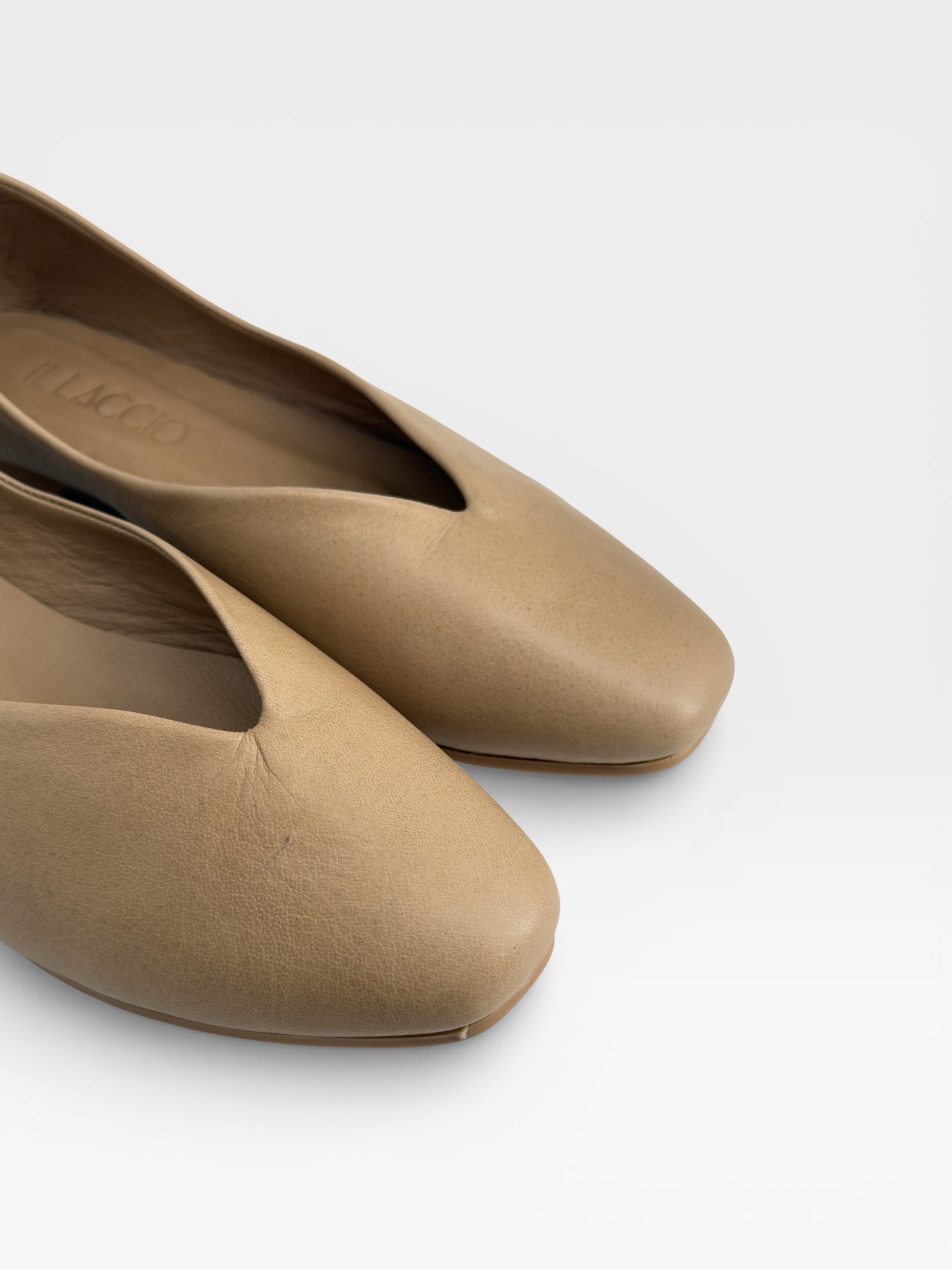 Queste scarpe da donna reinterpretano la classica ballerina in chiave essenziale e raffinata. Realizzate in morbida pelle beige dalla finitura liscia, presentano punta arrotondata e linea pulita che avvolge il piede con eleganza. Il design minimal le rende perfette come ballerine eleganti da indossare ogni giorno, in ufficio o nel tempo libero. Versatili e femminili, si abbinano con facilità a look casual e outfit più ricercati. Sceglile per completare il tuo guardaroba con un tocco sobrio e senza tempo.