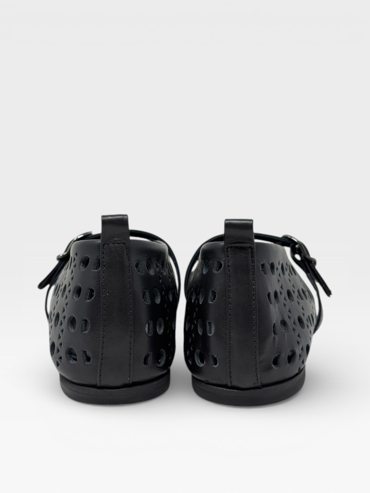 Queste scarpe da donna stile ballerine Mary Jane uniscono design essenziale e carattere contemporaneo. Realizzate in pelle nera traforata, presentano un motivo decorativo di fori che dona leggerezza e un effetto raffinato. Il cinturino regolabile con fibbia valorizza il piede aggiungendo un tocco femminile e pratico. Versatili e facili da abbinare, queste ballerine da donna nere sono perfette per completare look quotidiani, outfit minimal o abbinamenti casual chic.