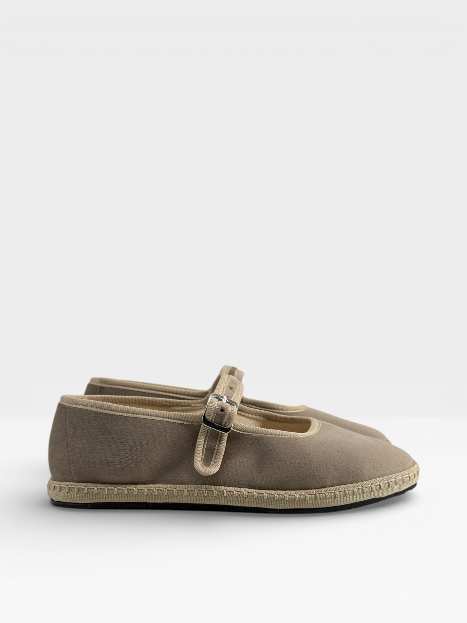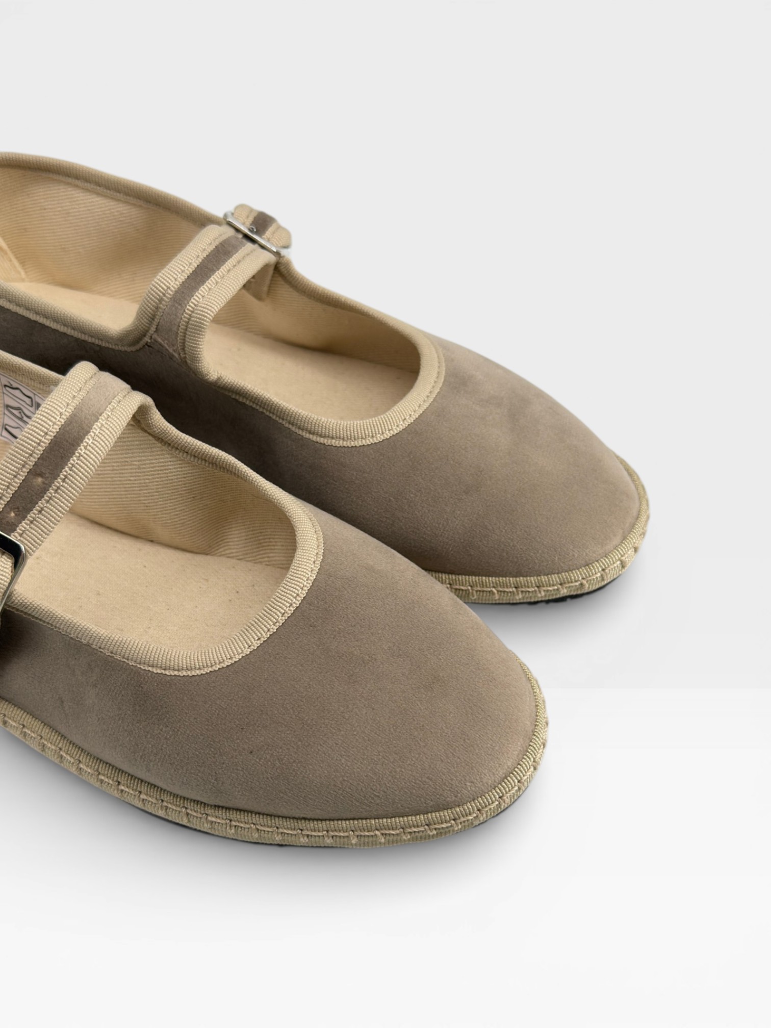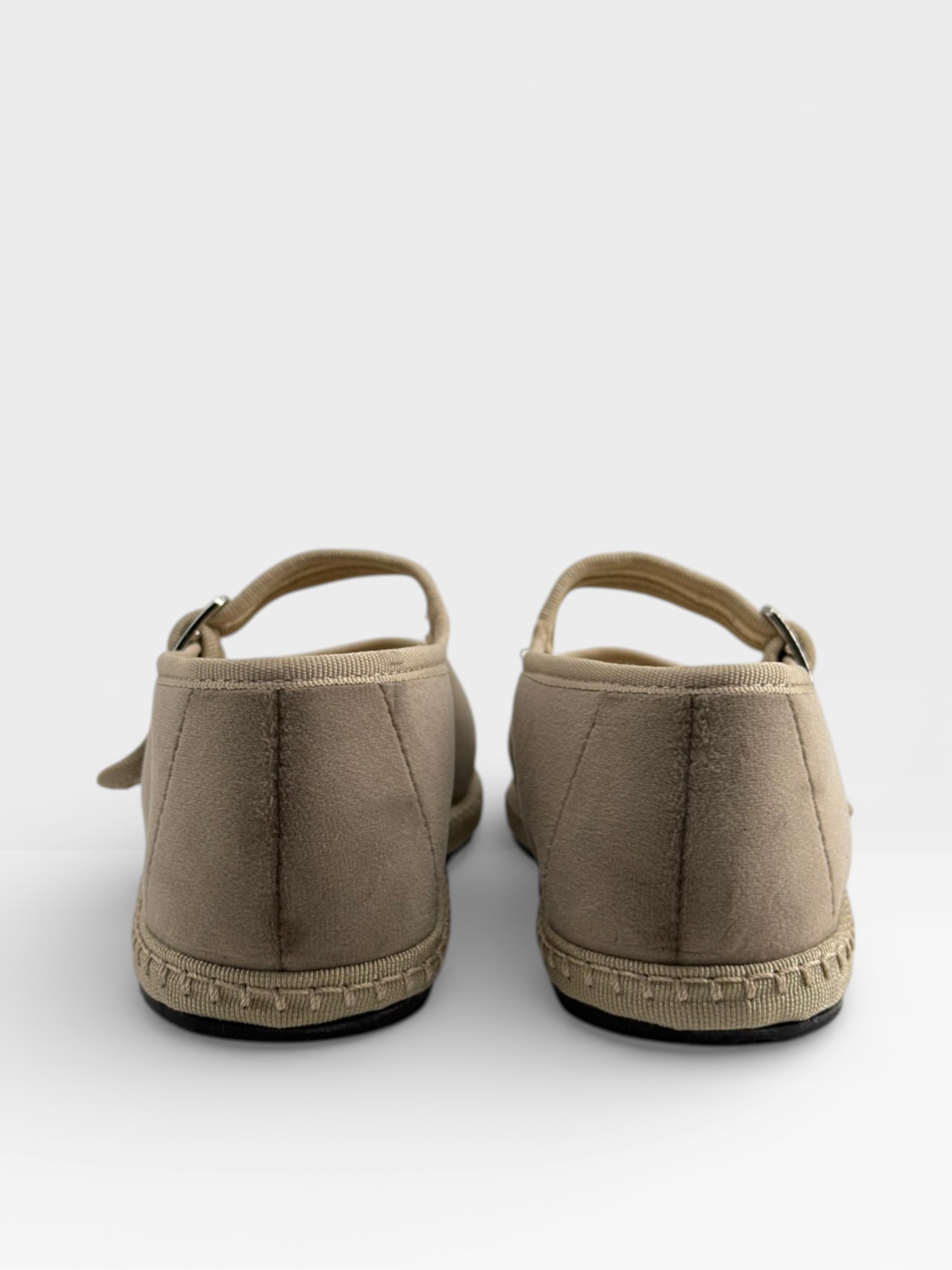 Eleganti e versatili, queste scarpe da donna friulane reinterpretano la tradizione con un tocco raffinato. Realizzate in velluto sabbia, presentano cinturino con fibbia laterale e profili tono su tono che definiscono la linea essenziale. La forma arrotondata e la suola piatta le rendono perfette come ballerine friulane da indossare ogni giorno, ma anche per occasioni speciali dal gusto bon ton. Ideali con abiti midi, gonne o pantaloni sartoriali, aggiungono carattere e femminilità al look. Lasciati conquistare dal fascino autentico delle friulane.