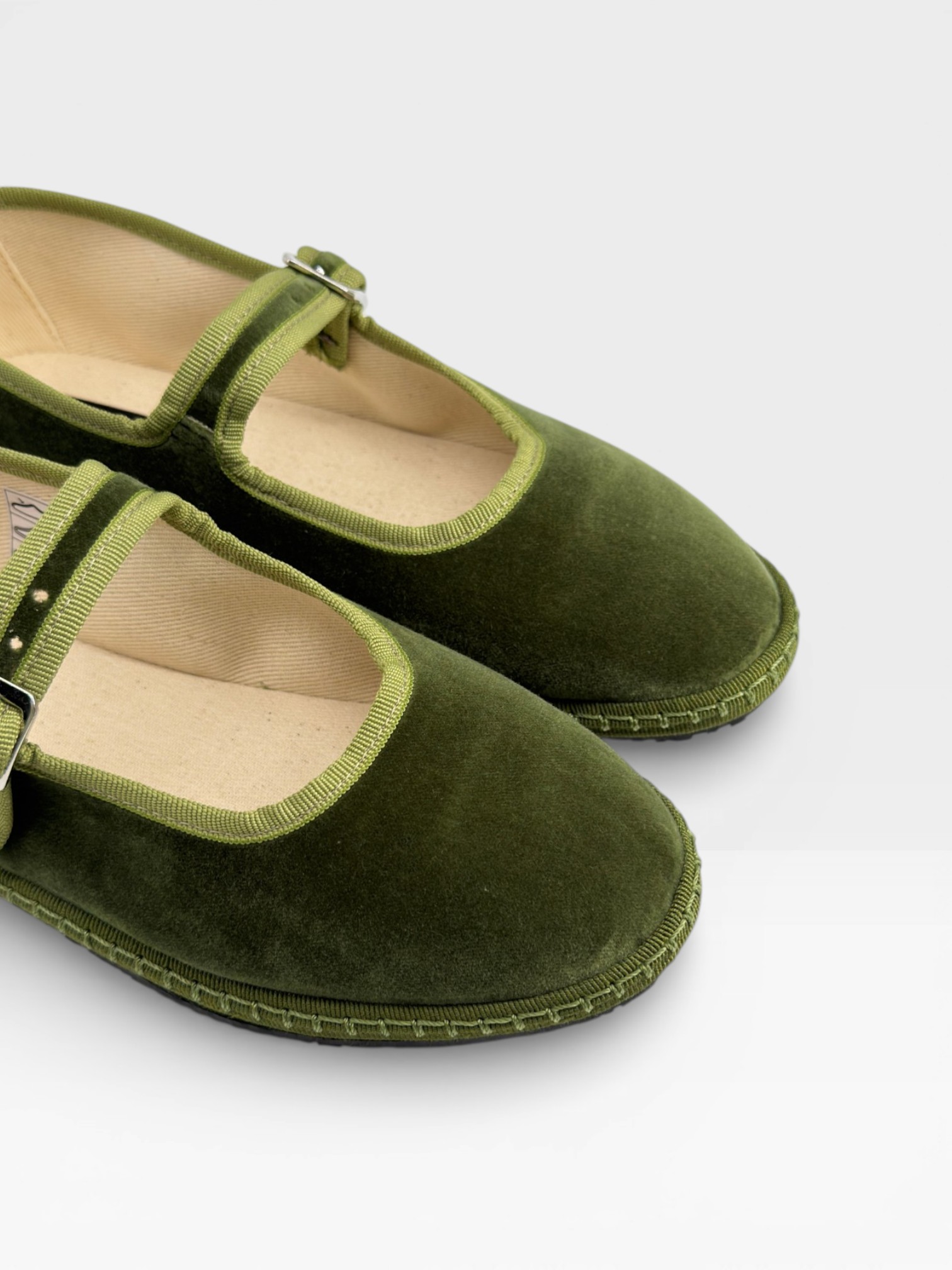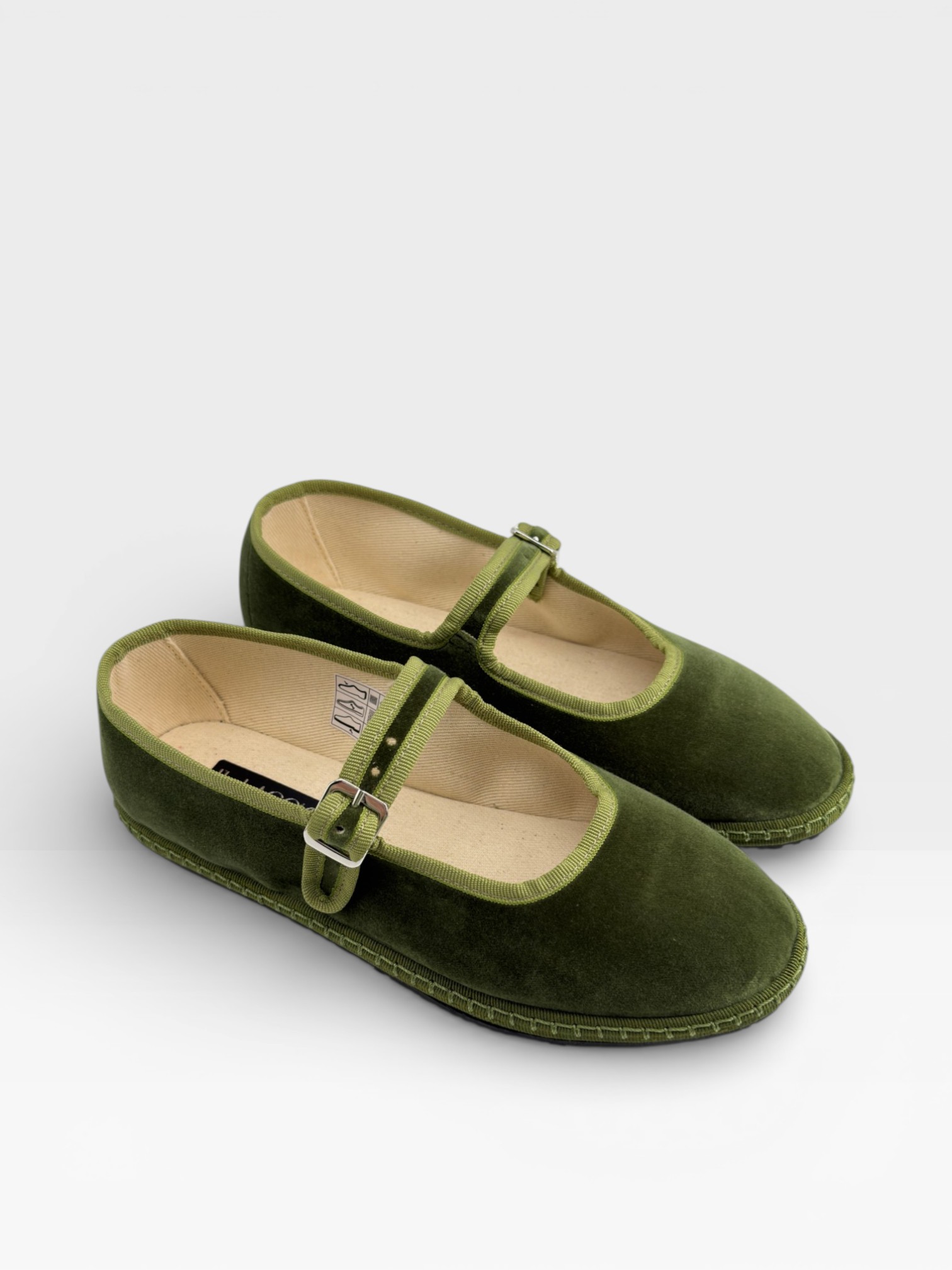 Eleganti e versatili, queste scarpe da donna friulane reinterpretano la tradizione con un tocco raffinato. Realizzate in velluto verde, presentano cinturino con fibbia laterale e profili tono su tono che definiscono la linea essenziale. La forma arrotondata e la suola piatta le rendono perfette come ballerine friulane da indossare ogni giorno, ma anche per occasioni speciali dal gusto bon ton. Ideali con abiti midi, gonne o pantaloni sartoriali, aggiungono carattere e femminilità al look. Lasciati conquistare dal fascino autentico delle friulane.
