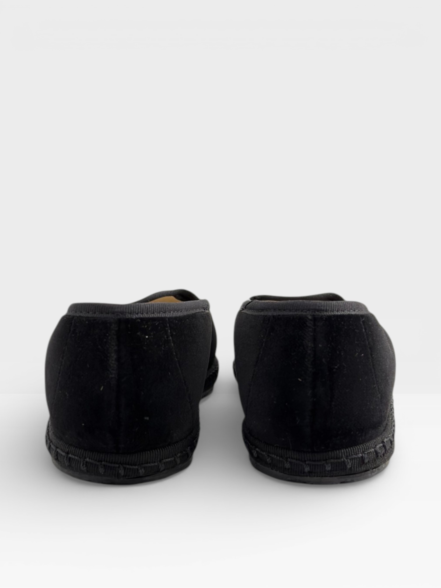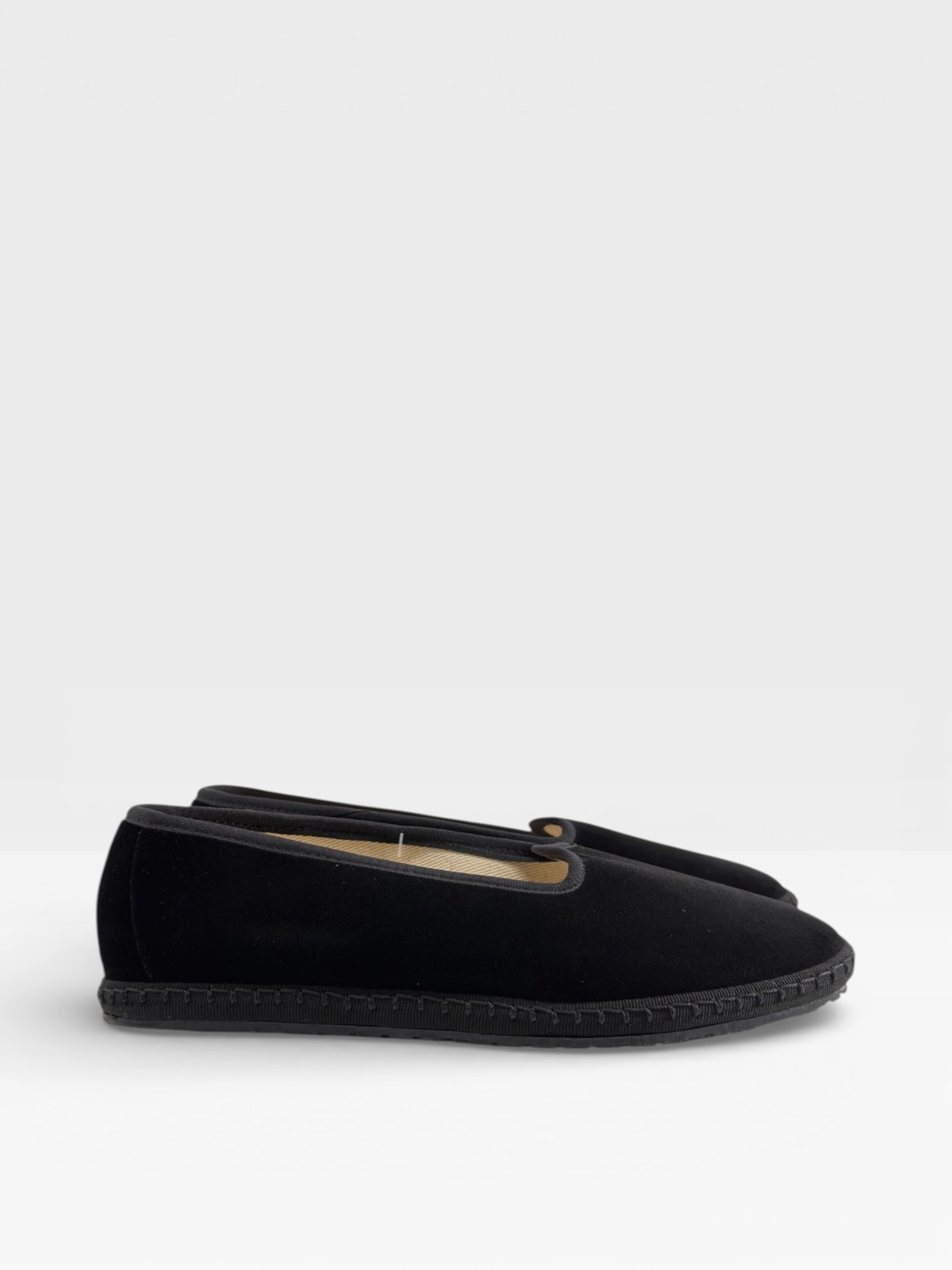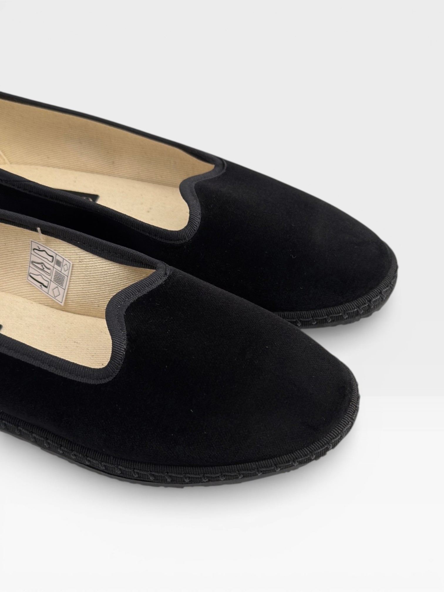 Iconiche e raffinate, queste scarpe da donna friulane esprimono eleganza senza tempo. Realizzate in velluto nero, presentano linea essenziale, punta arrotondata e profili tono su tono che valorizzano la silhouette. La suola piatta e il design slip-on le rendono perfette come ballerine friulane comode e versatili, ideali per look quotidiani curati o abbinamenti più sofisticati. Da indossare con jeans, gonne midi o abiti femminili per un tocco di carattere deciso. Aggiungi al tuo guardaroba un classico intramontabile dal fascino autentico.