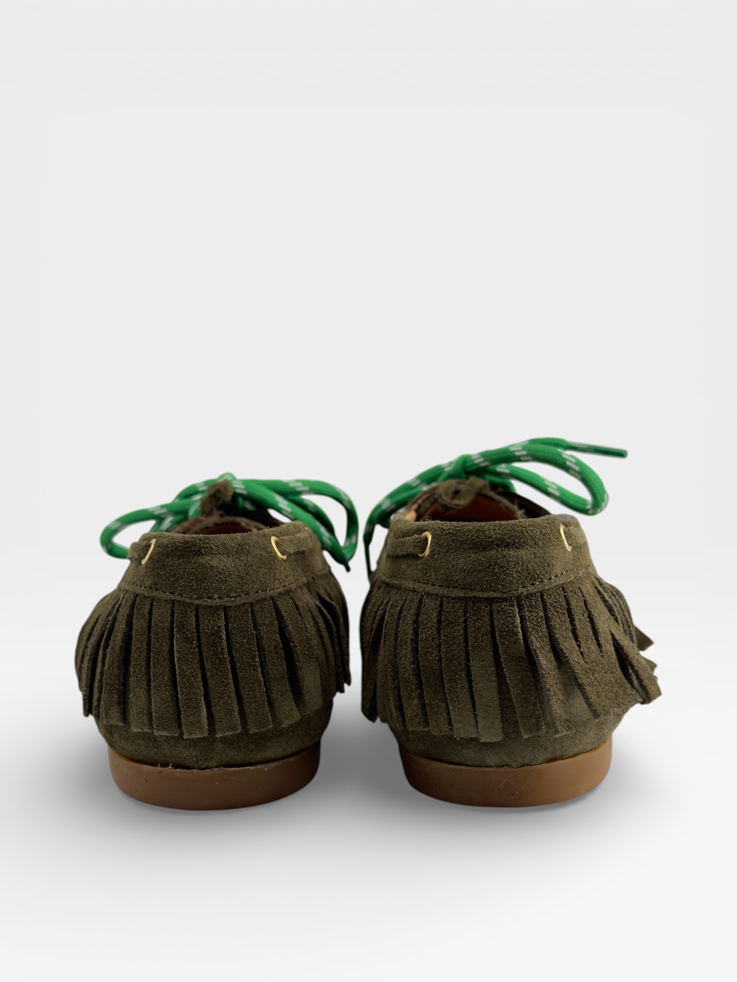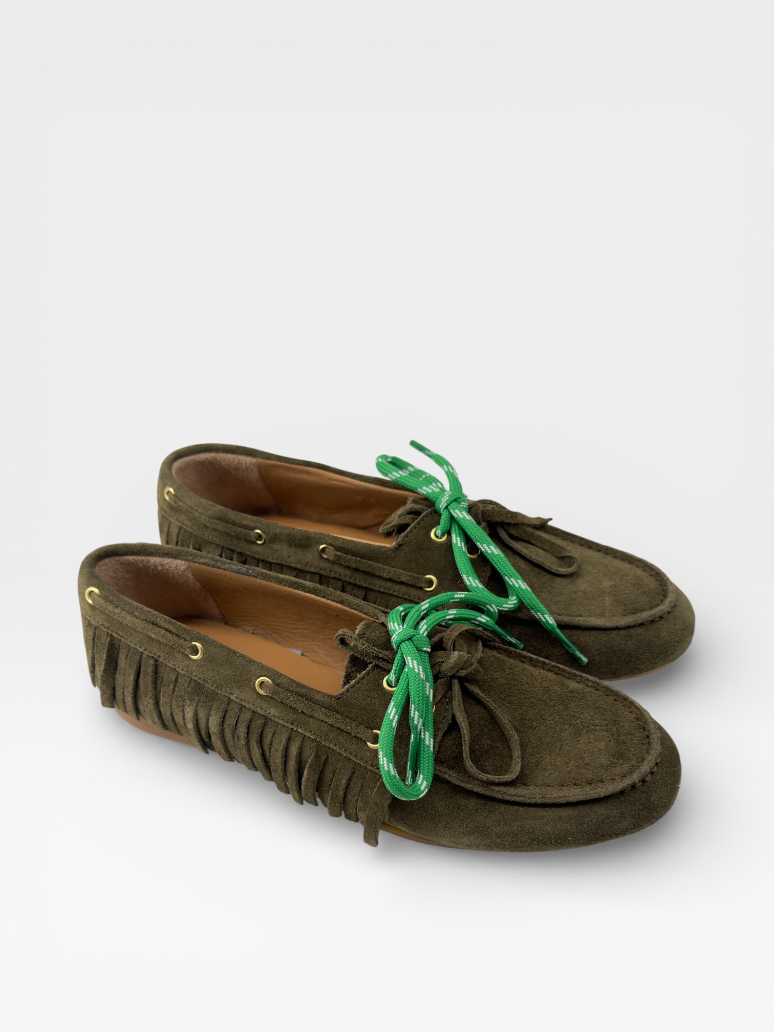 Mocassini verde oliva in suede con frange