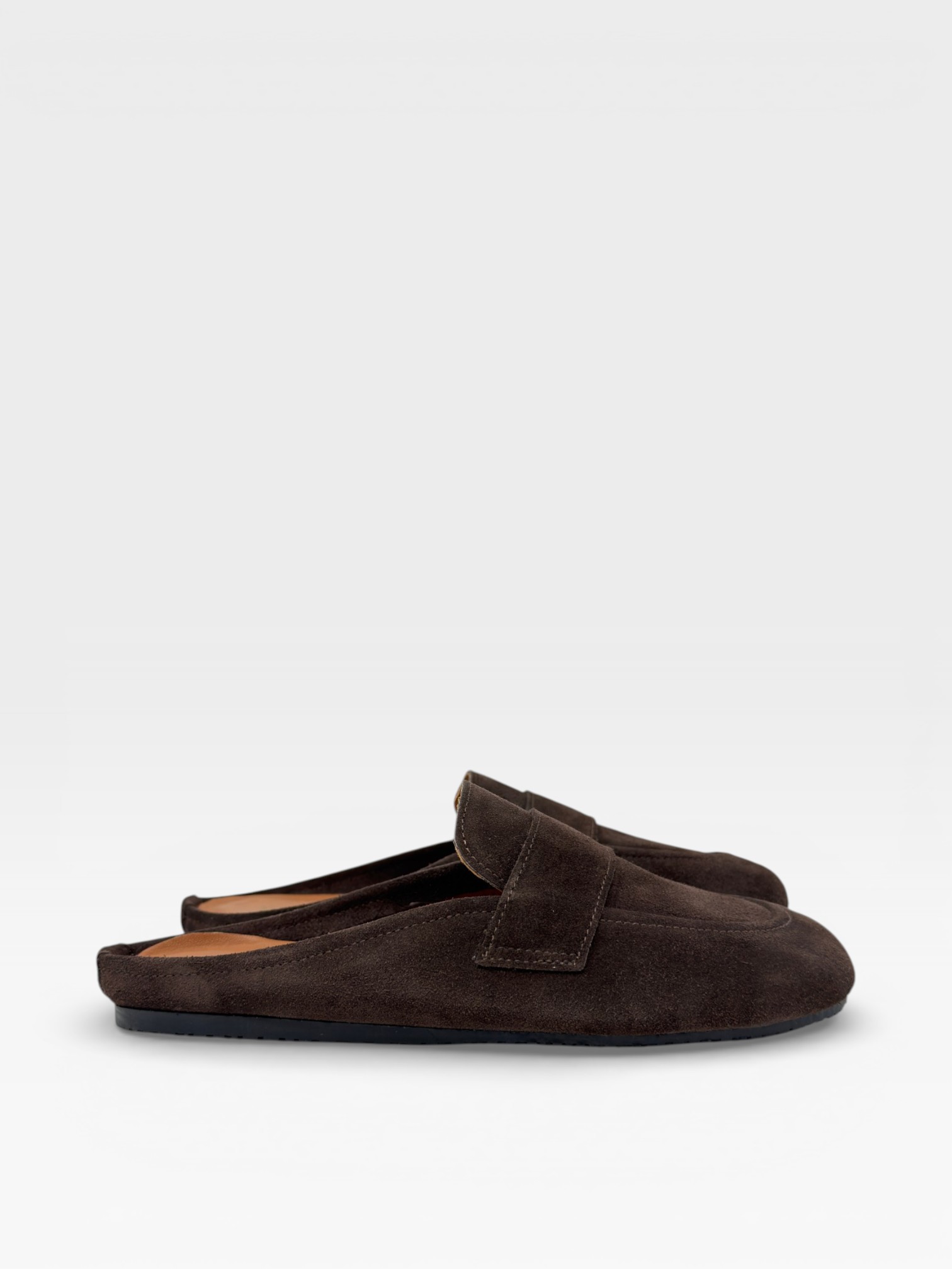 Queste scarpe da donna stile sabot mocassino esprimono un'eleganza essenziale e contemporanea. Realizzate in camoscio color testa di moro, presentano una linea morbida con punta arrotondata e una fascia frontale che richiama il design classico dei mocassini. Il tallone aperto rende questi sabot da donna in camoscio pratici e versatili, ideali per completare look quotidiani con un tocco raffinato. Perfetti con jeans, pantaloni leggeri o outfit casual chic.