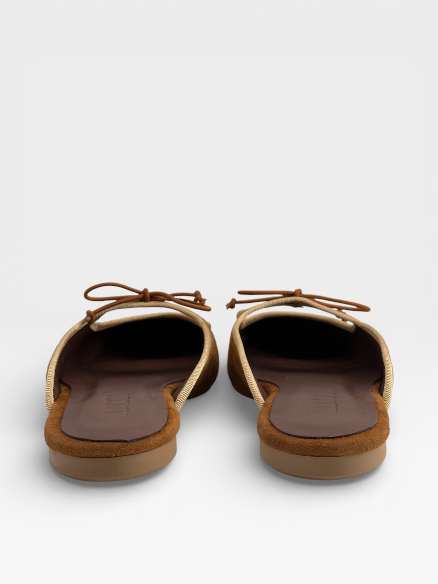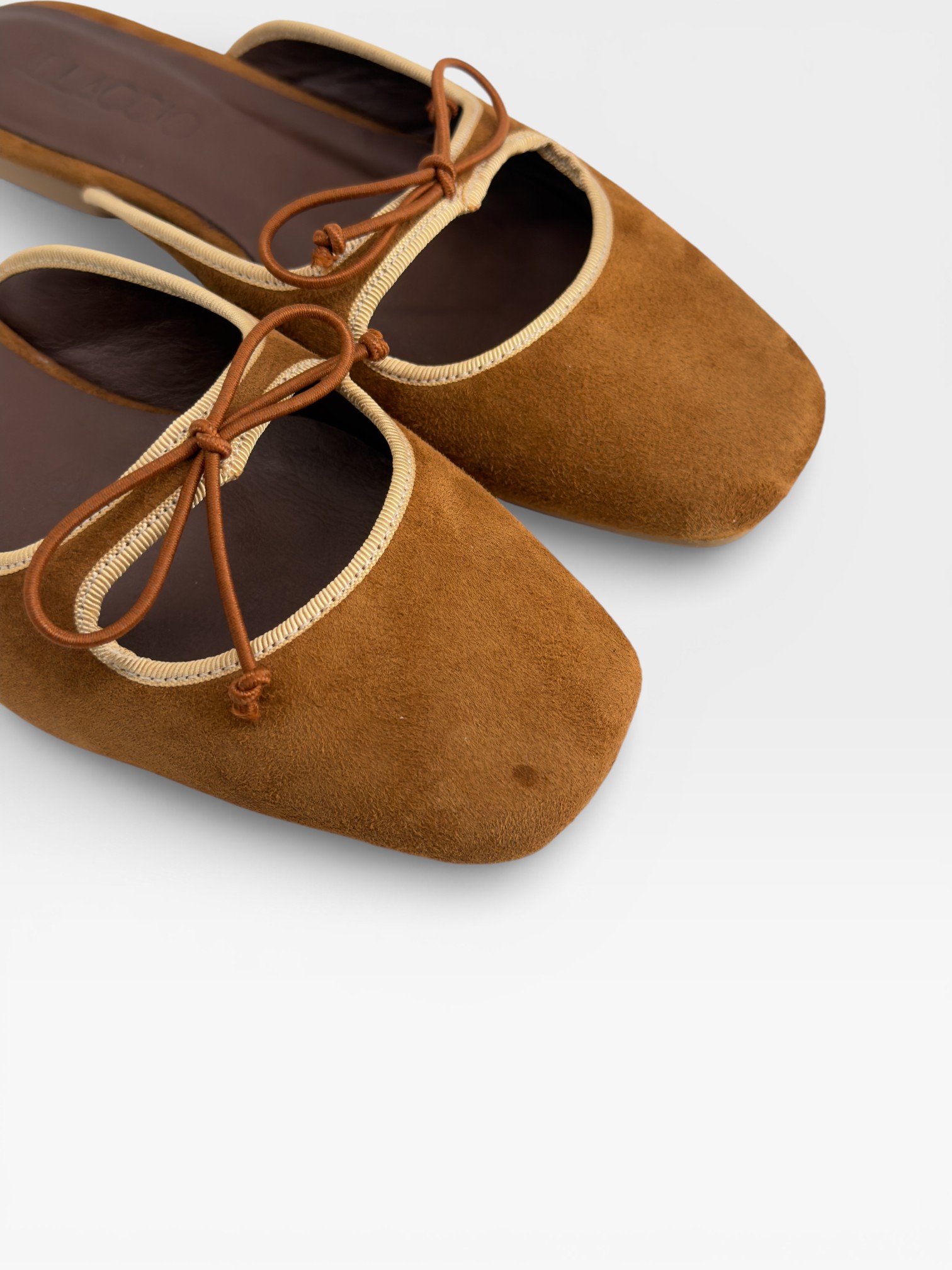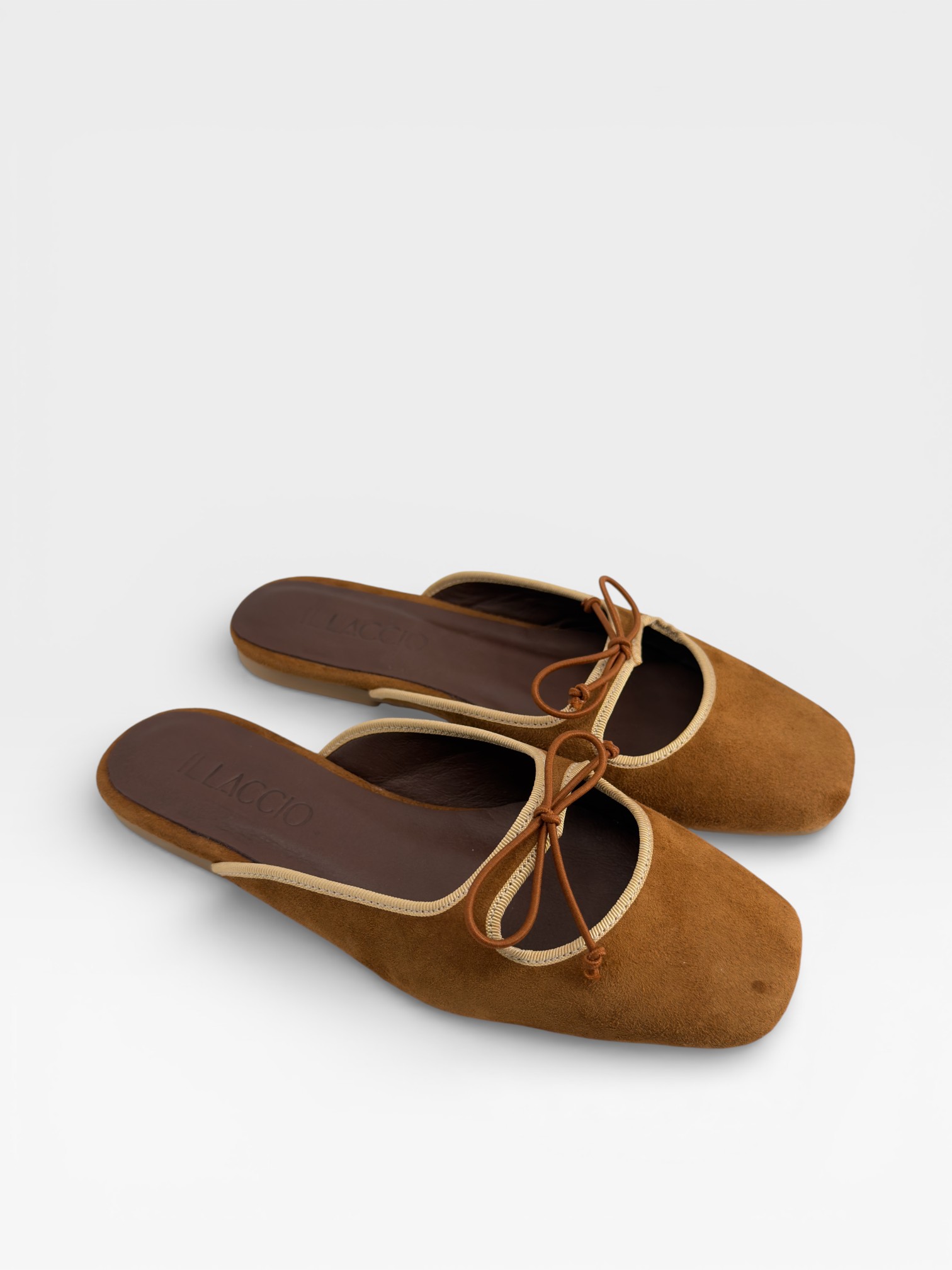 Sabot scamosciate cuoio con fiocco