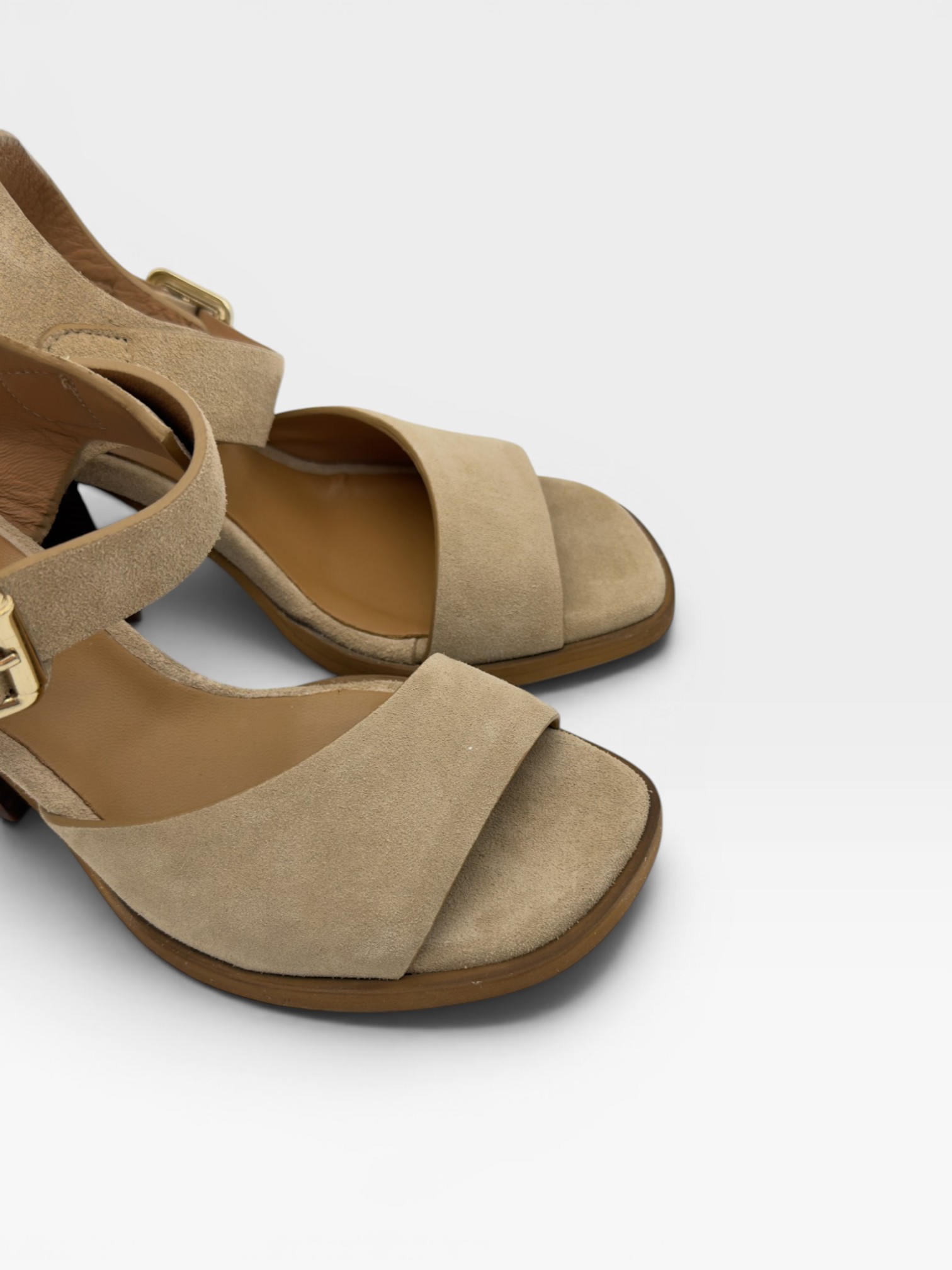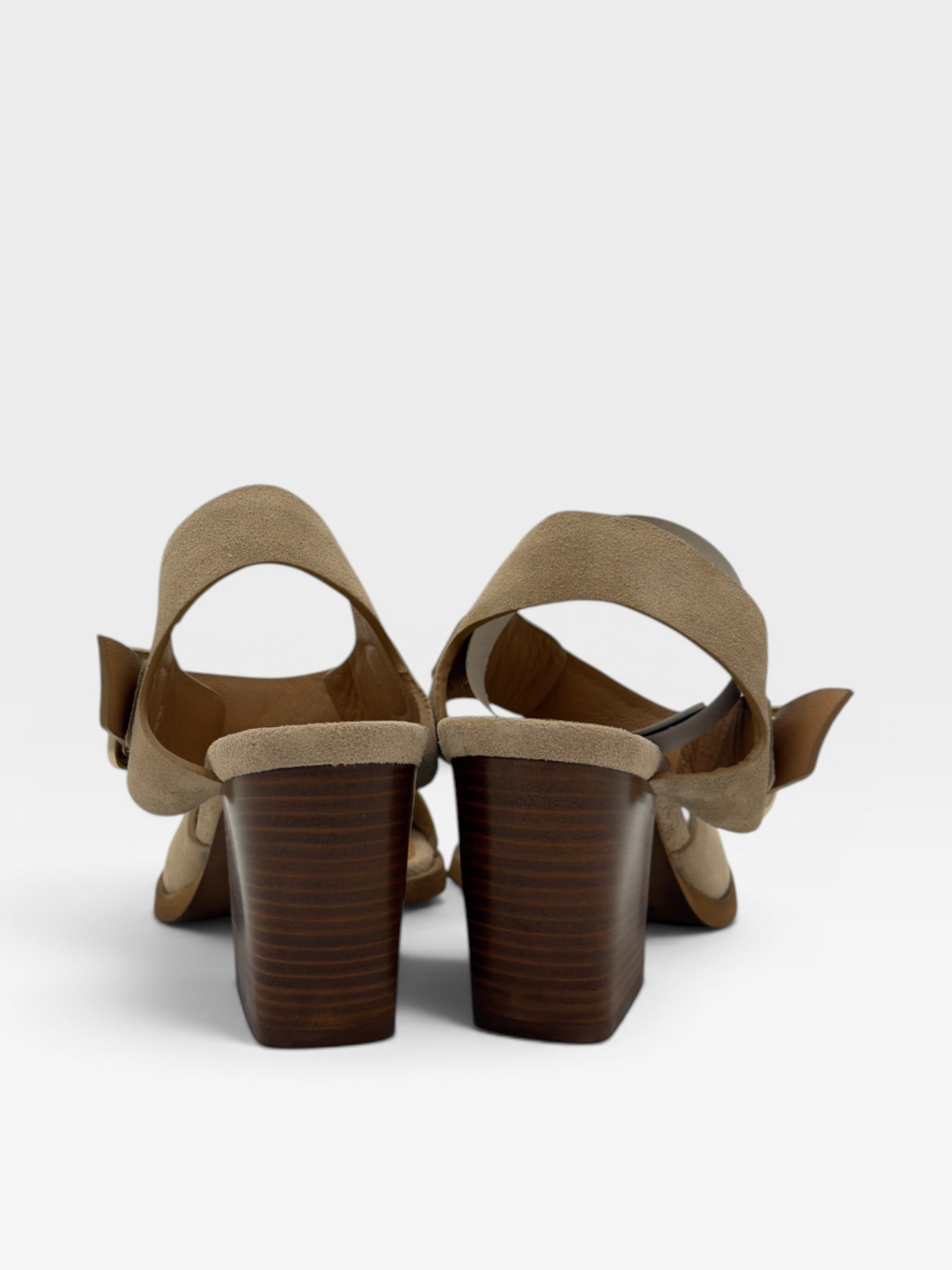 Sandali eleganti e versatili realizzati in morbido suede color beige, ideali per un look raffinato