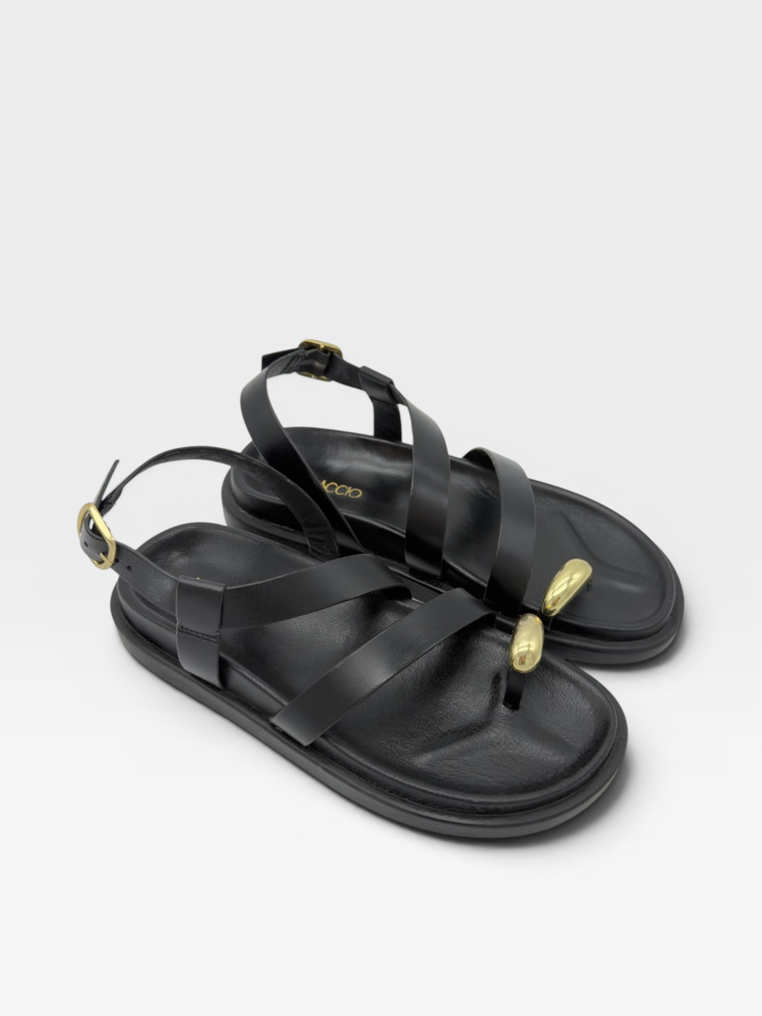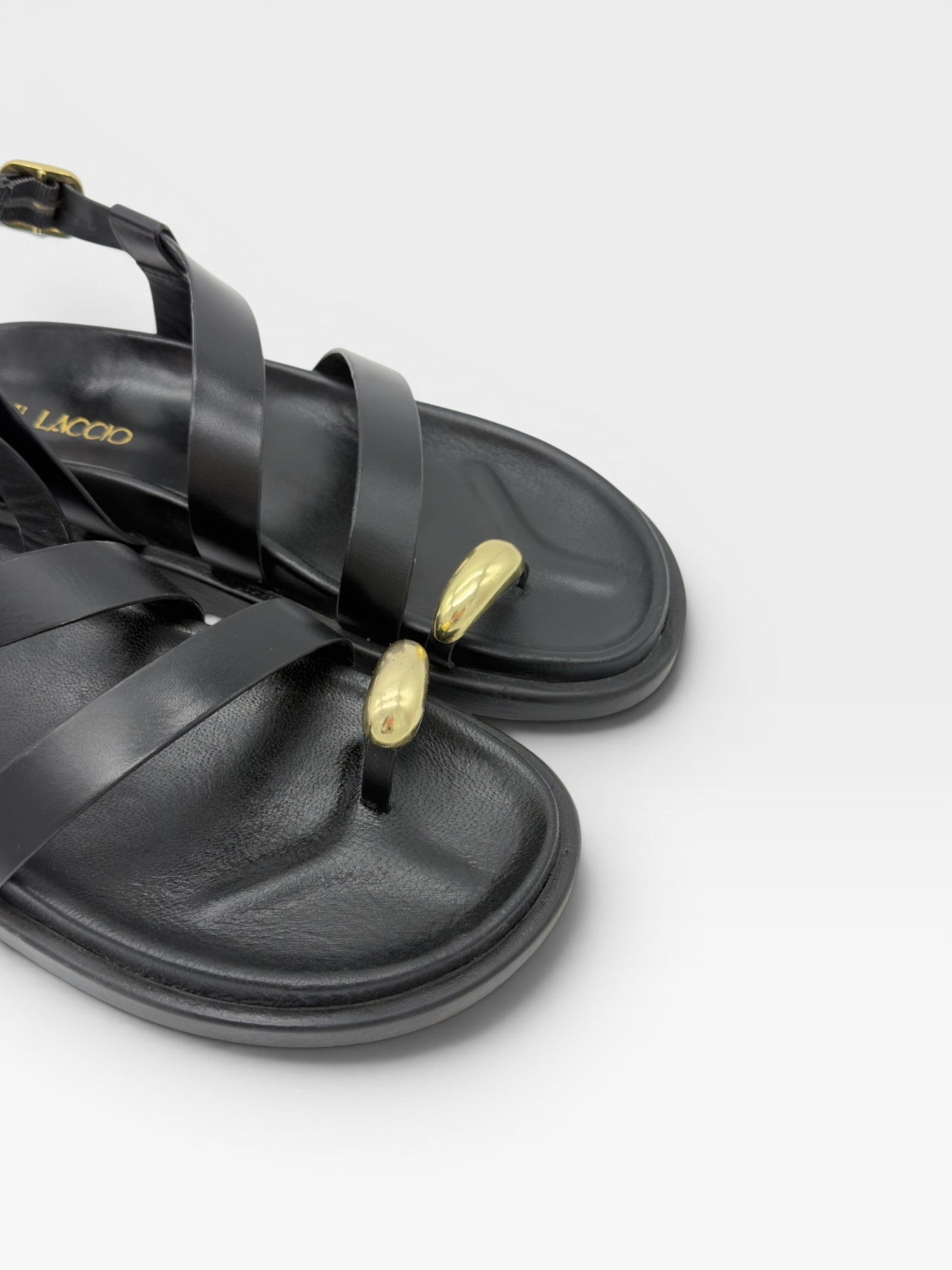 Sandali neri bassi con dettaglio oro da donna