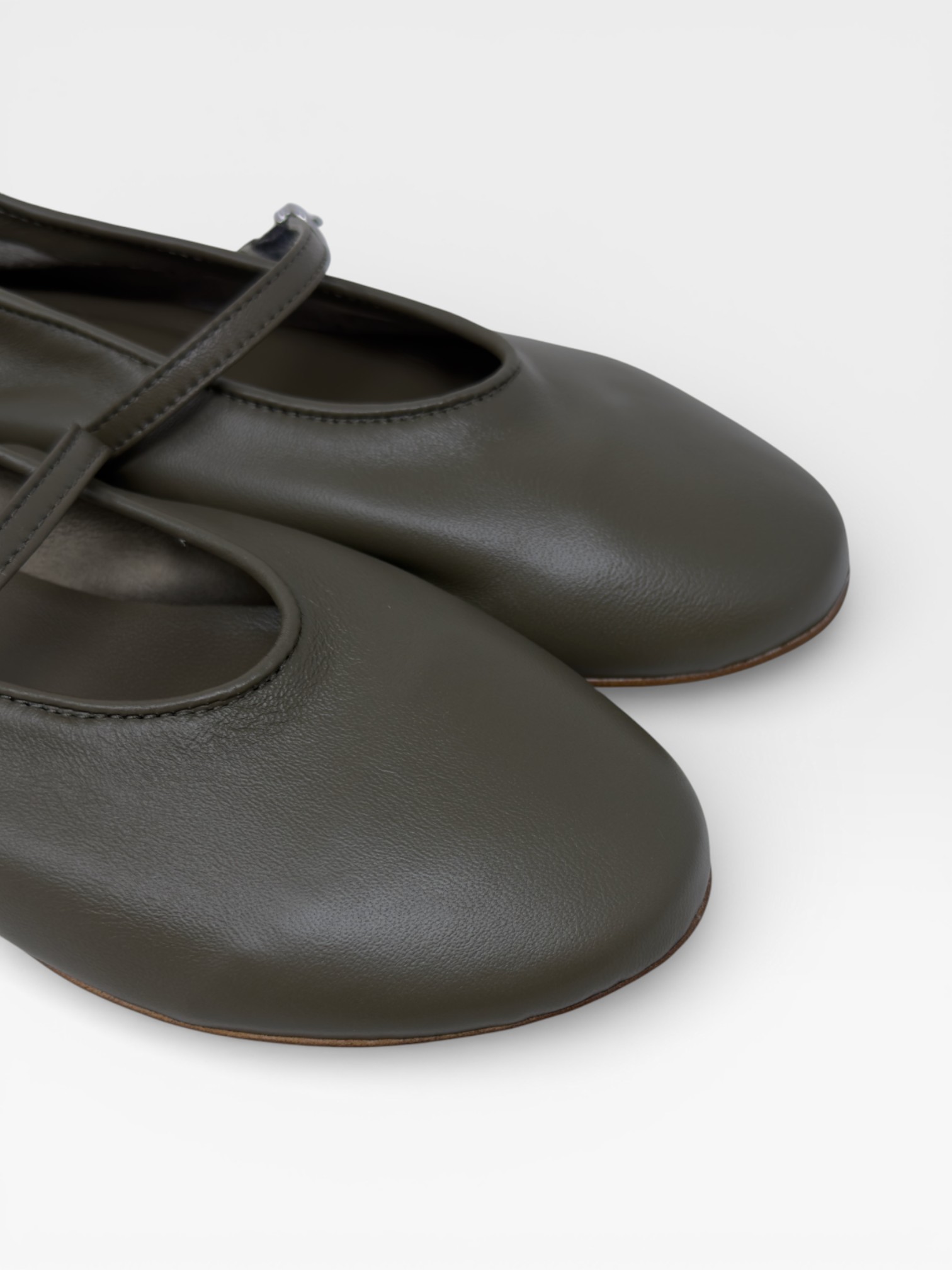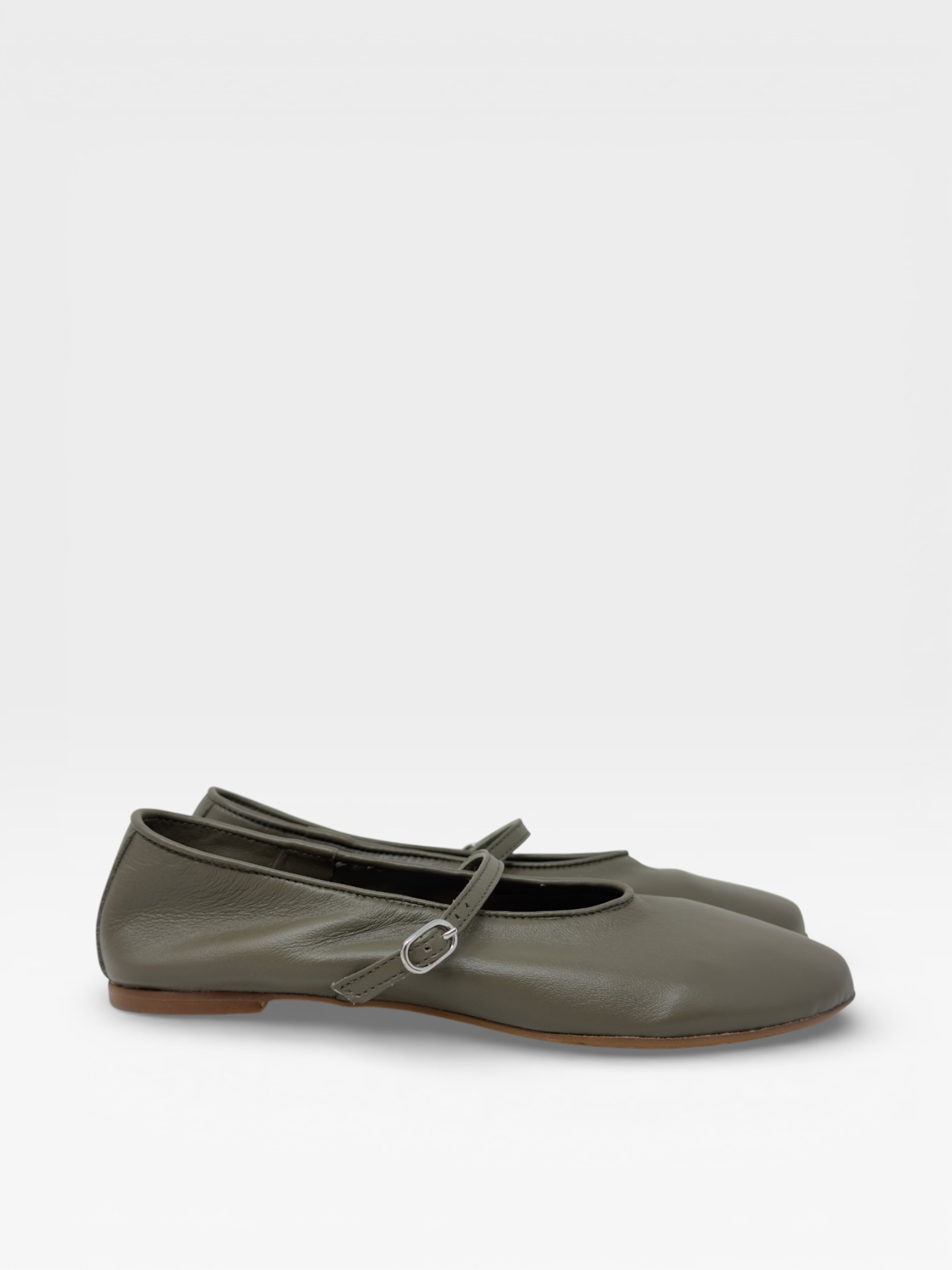 Essenziali e raffinate, queste scarpe da donna ballerine in verde oliva si distinguono per la linea pulita e la finitura liscia dal fascino naturale. La punta arrotondata dona armonia al design, mentre il cinturino sottile con fibbia laterale aggiunge un dettaglio femminile e delicato. La suola bassa garantisce comfort e leggerezza, rendendole perfette come ballerine donna per l'ufficio, il tempo libero o look casual chic. Versatili e contemporanee, completano ogni outfit con eleganza discreta. Scoprile e valorizza il tuo stile quotidiano con semplicità sofisticata.