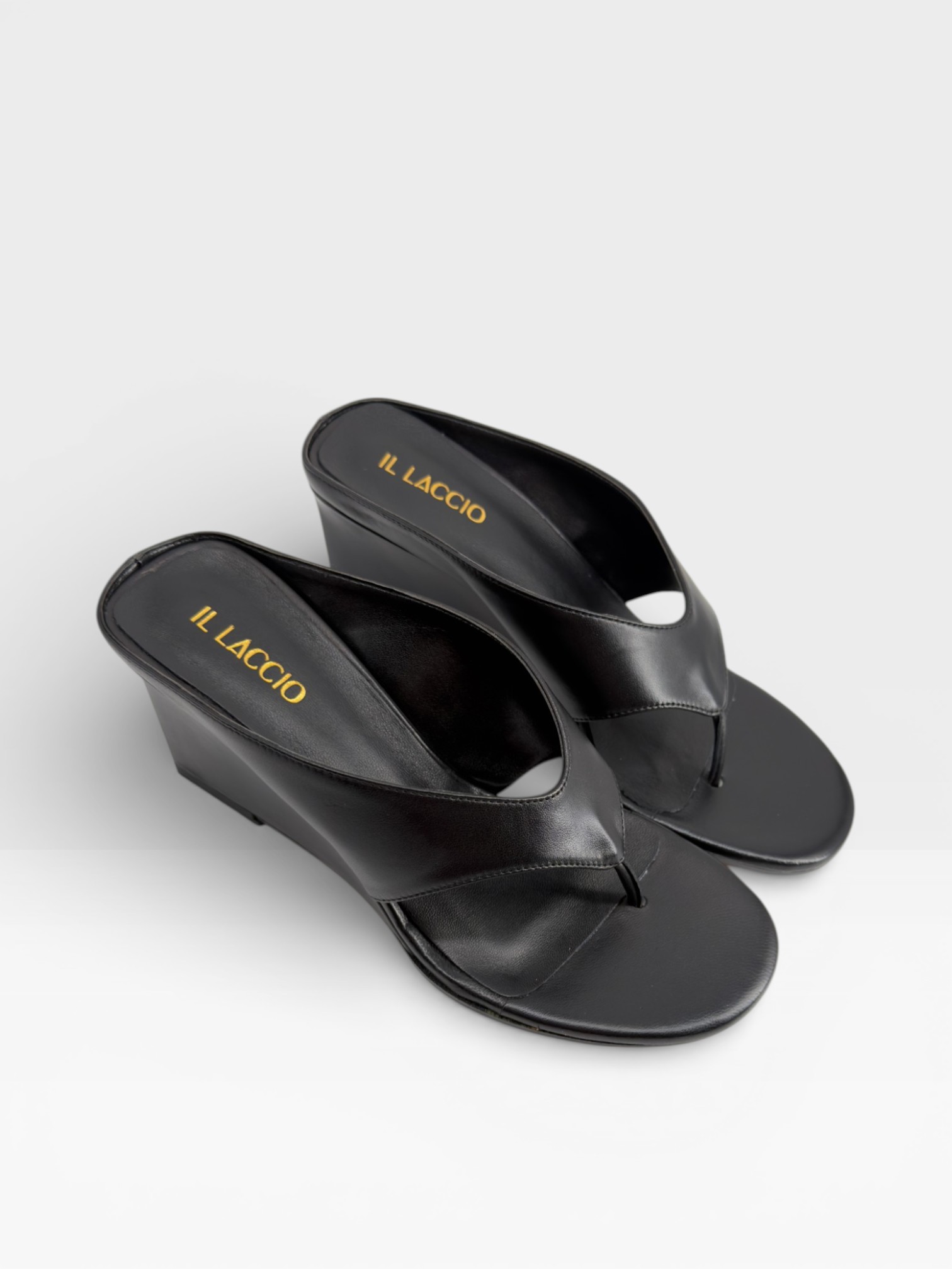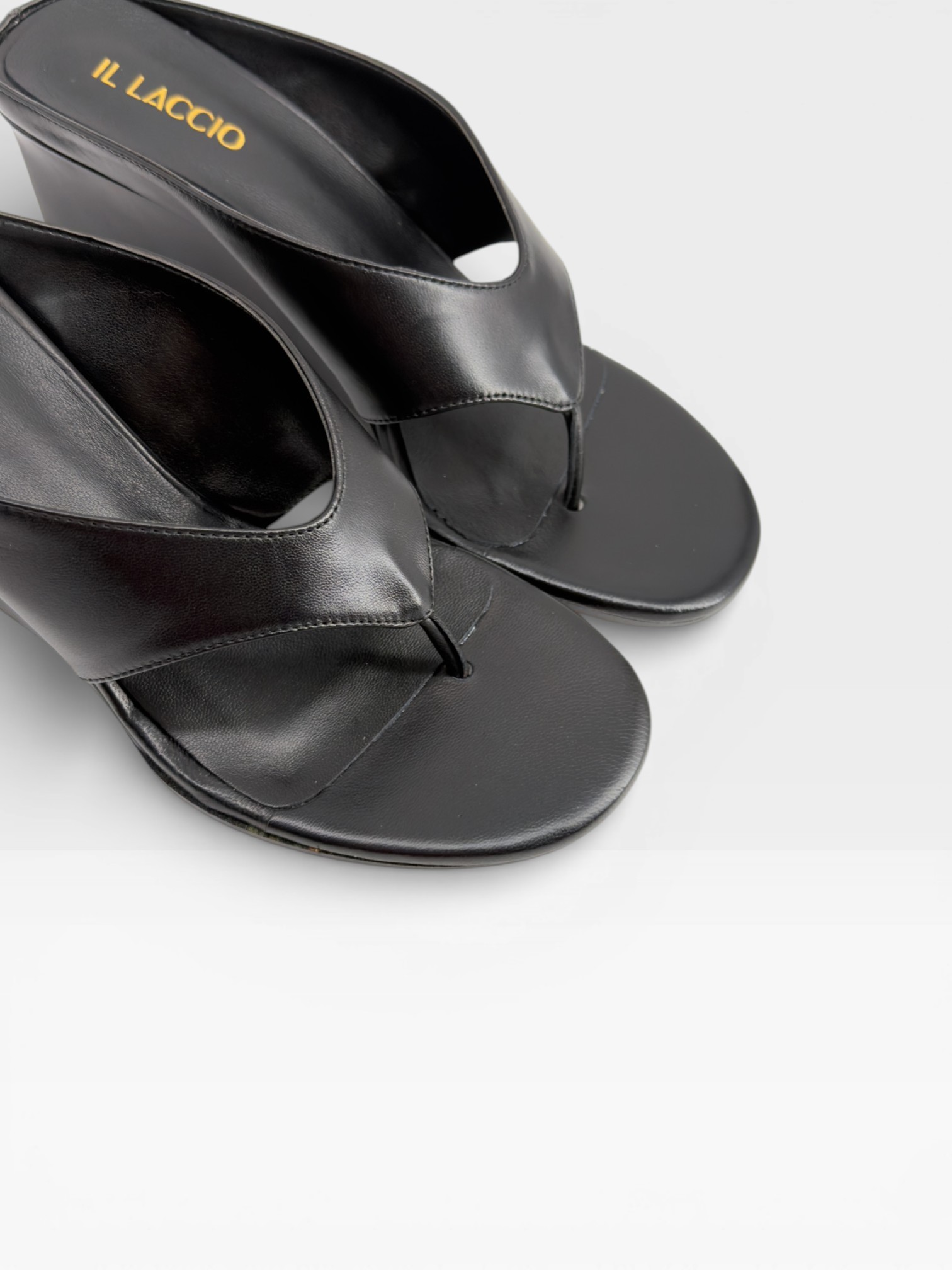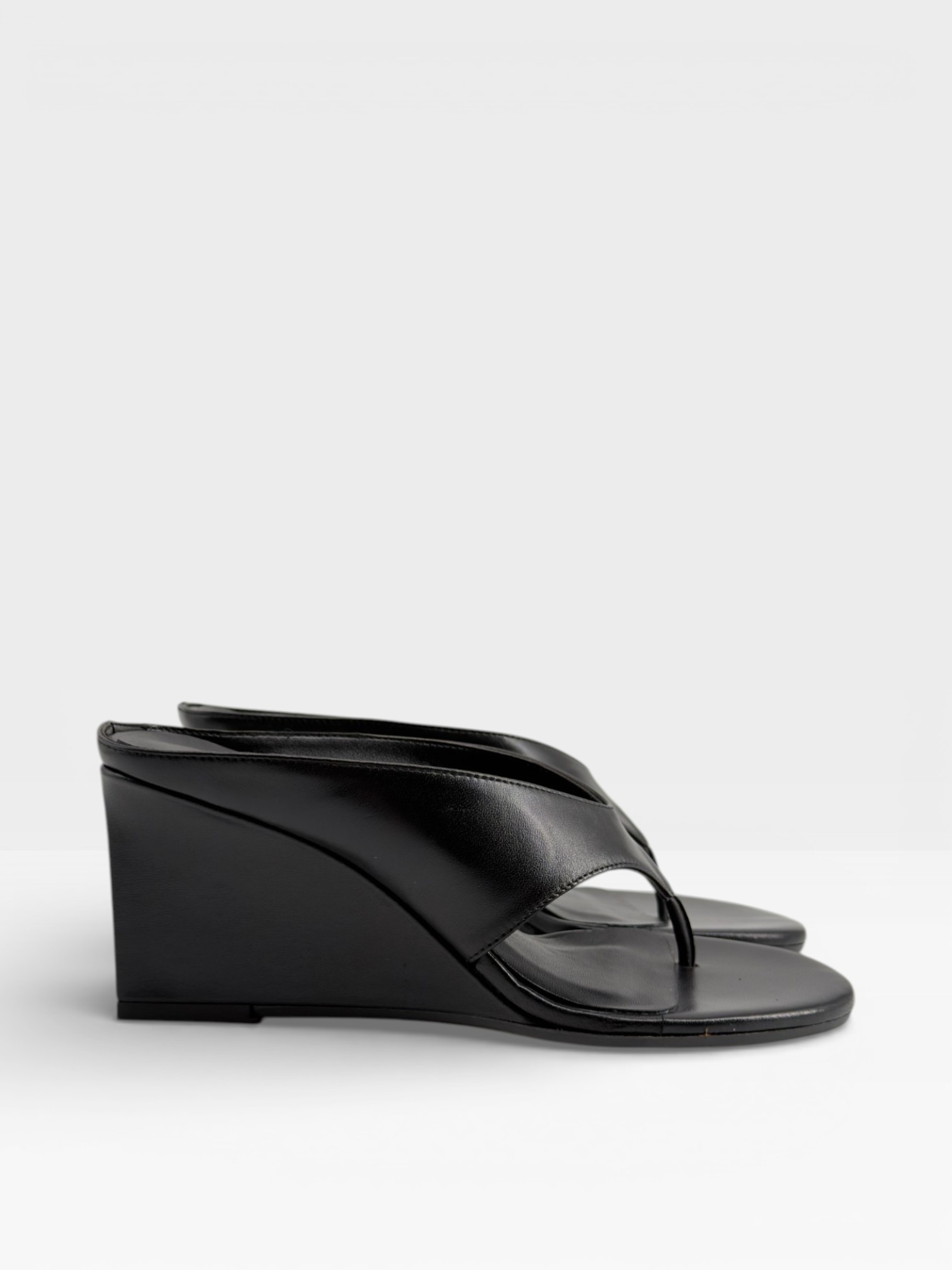 Essenziali e sofisticate, queste scarpe da donna modello sandalo infradito reinterpretano il minimalismo in chiave contemporanea. Realizzate in pelle nera liscia, presentano fascia ampia e design pulito che valorizza la linea del piede. La zeppa di 7,5 cm slancia la silhouette garantendo stabilità e comfort, ideale per accompagnarti dalla giornata alla sera. Perfetti come sandali con zeppa da abbinare ad abiti lunghi, pantaloni palazzo o look estivi total black. Sceglili per un'eleganza moderna e versatile.