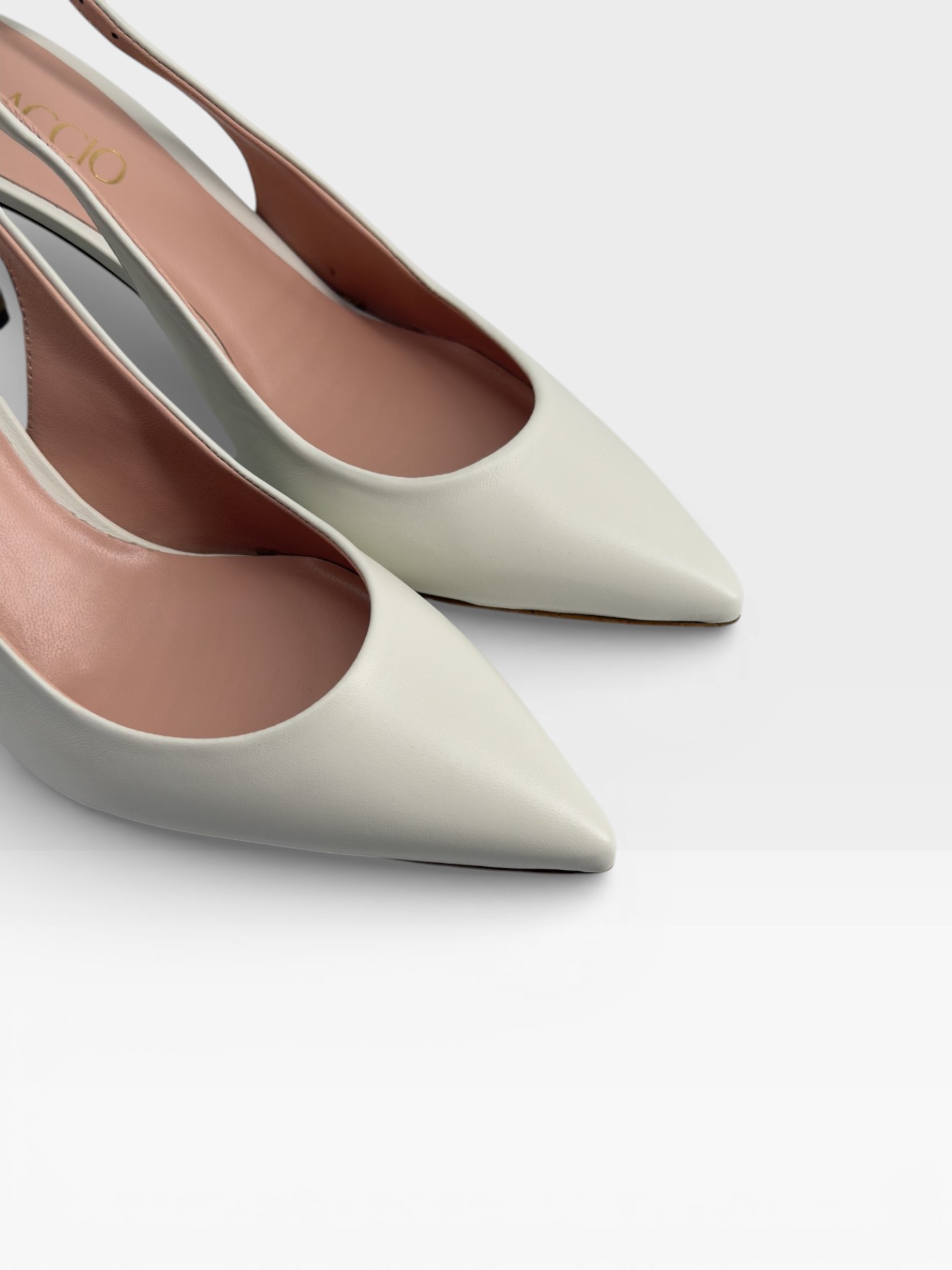 Scarpe da donna slingback bianca con tacco 8 cm.