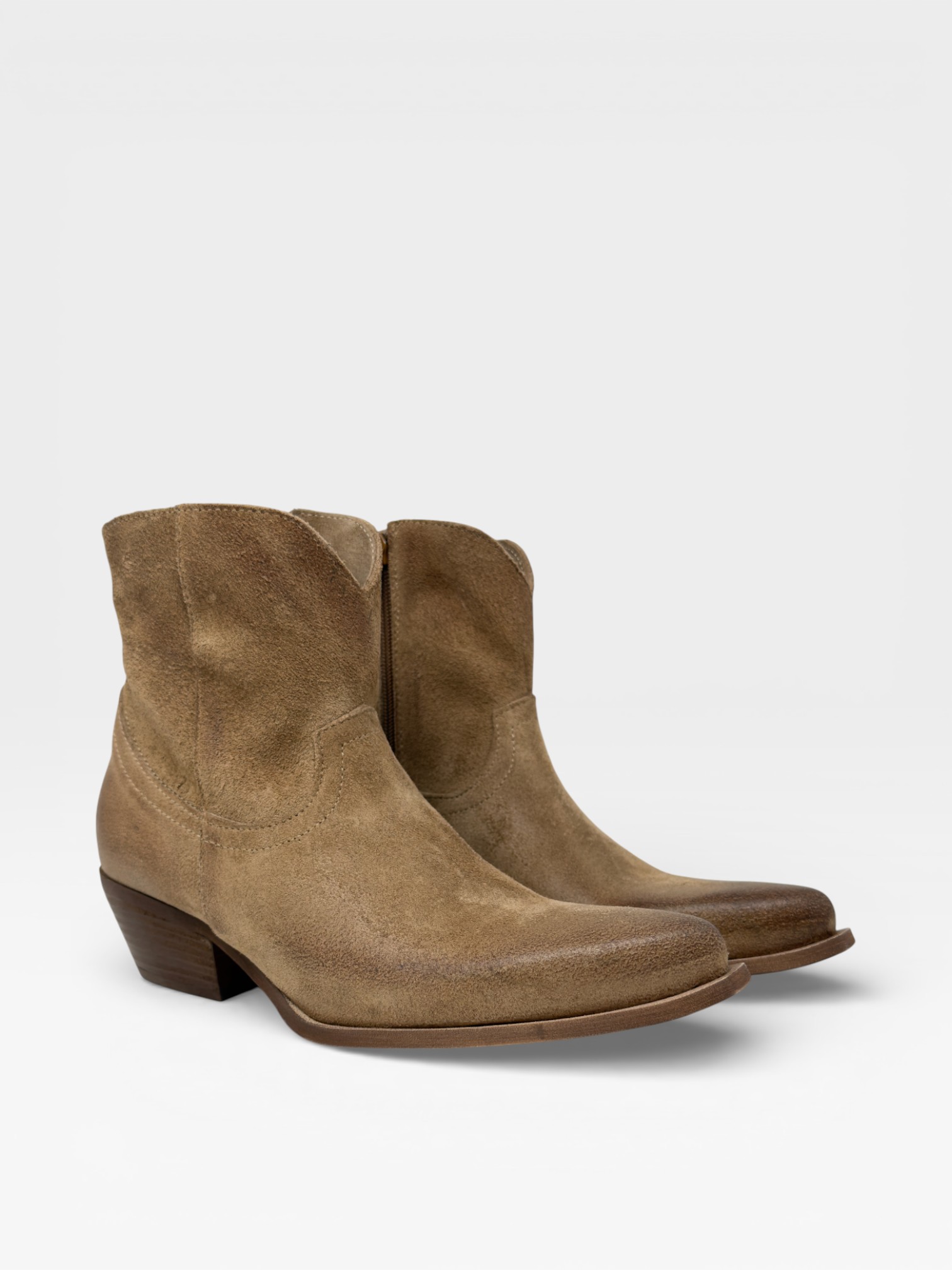 Dal fascino caldo e naturale, queste scarpe da donna si presentano come stivaletti beige in suede dalleffetto morbido e leggermente sfumato. La punta affusolata slancia la silhouette, mentre il tacco medio in legno aggiunge stabilità e carattere. La chiusura laterale con zip rende questi stivaletti donna pratici e versatili, perfetti con jeans, abiti midi o look casual chic. Ideali per la stagione più fresca, donano un tocco sofisticato e contemporaneo a ogni outfit. Scoprili e completa il tuo stile con eleganza senza tempo.