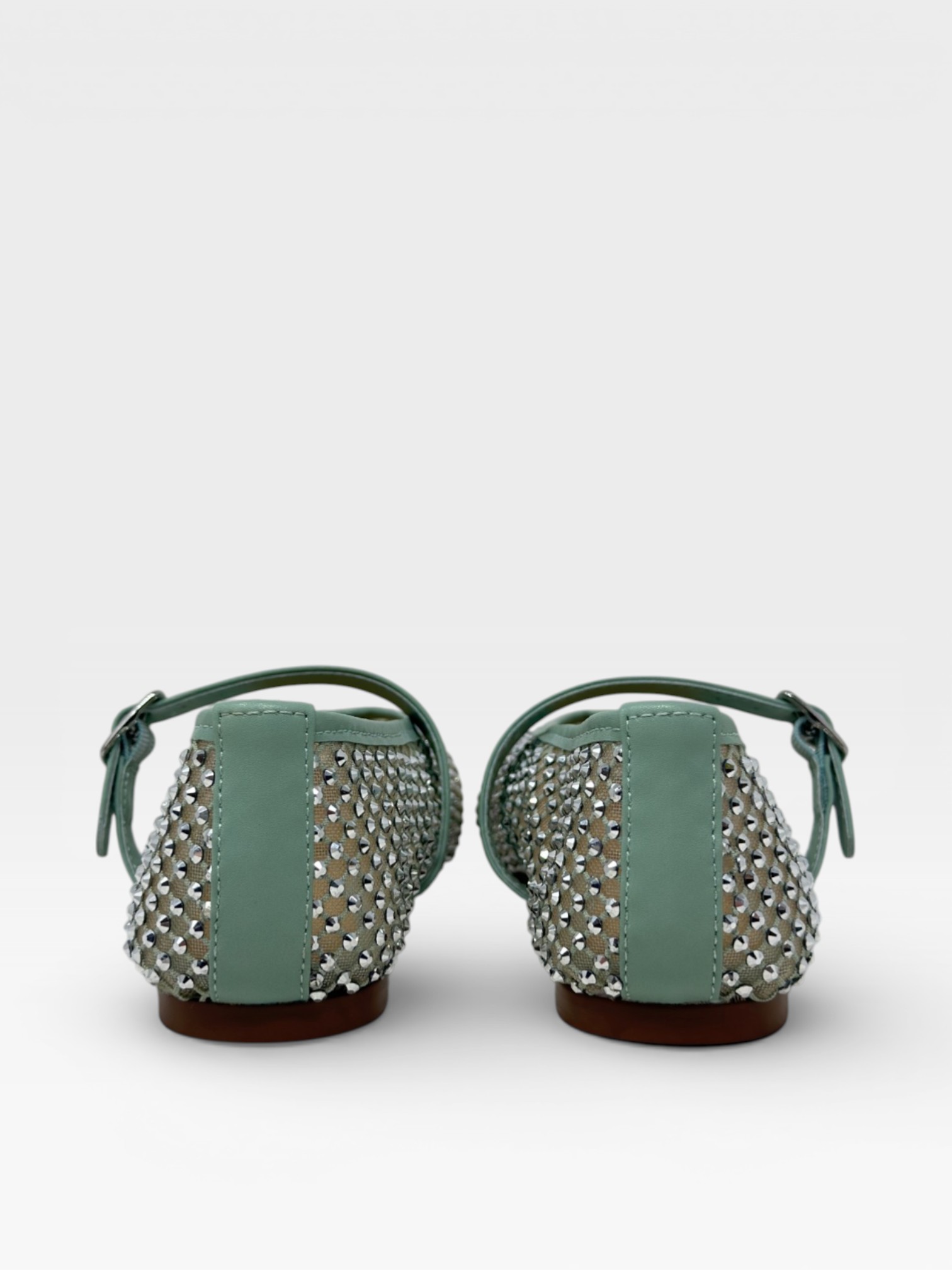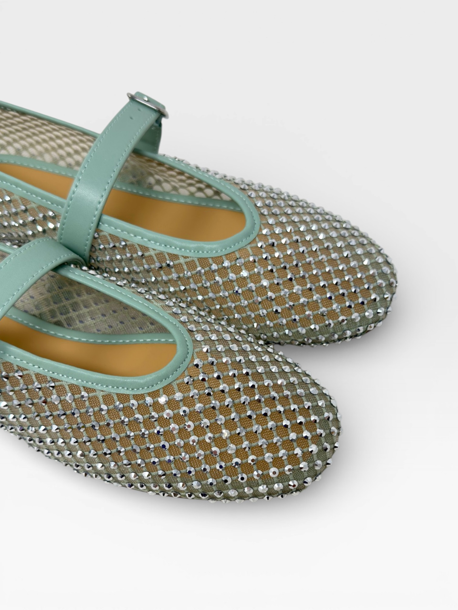 Queste scarpe da donna stile ballerine Mary Jane conquistano con un design luminoso e raffinato. La tomaia è interamente impreziosita da strass che creano un effetto scintillante e sofisticato, mentre il cinturino regolabile color verde salvia aggiunge un dettaglio femminile e delicato. La linea affusolata e il profilo leggero rendono queste ballerine da donna eleganti perfette per valorizzare look quotidiani, outfit primaverili o occasioni speciali con un tocco di luce.